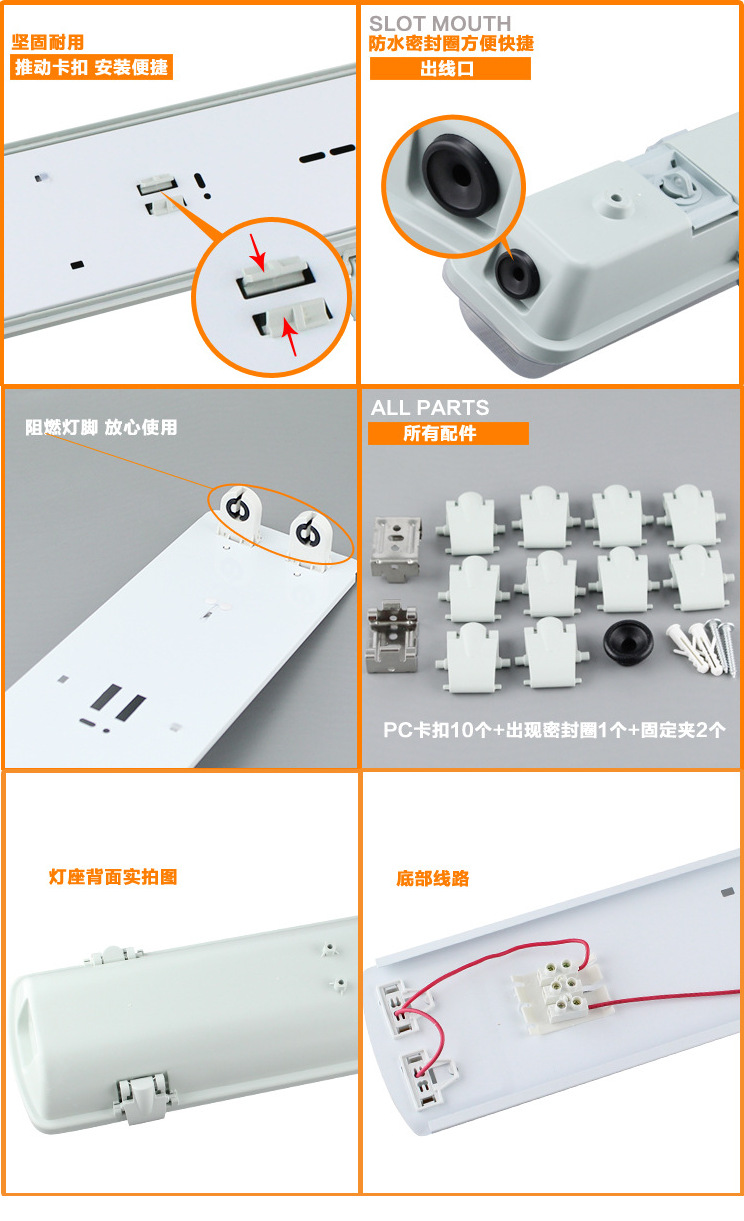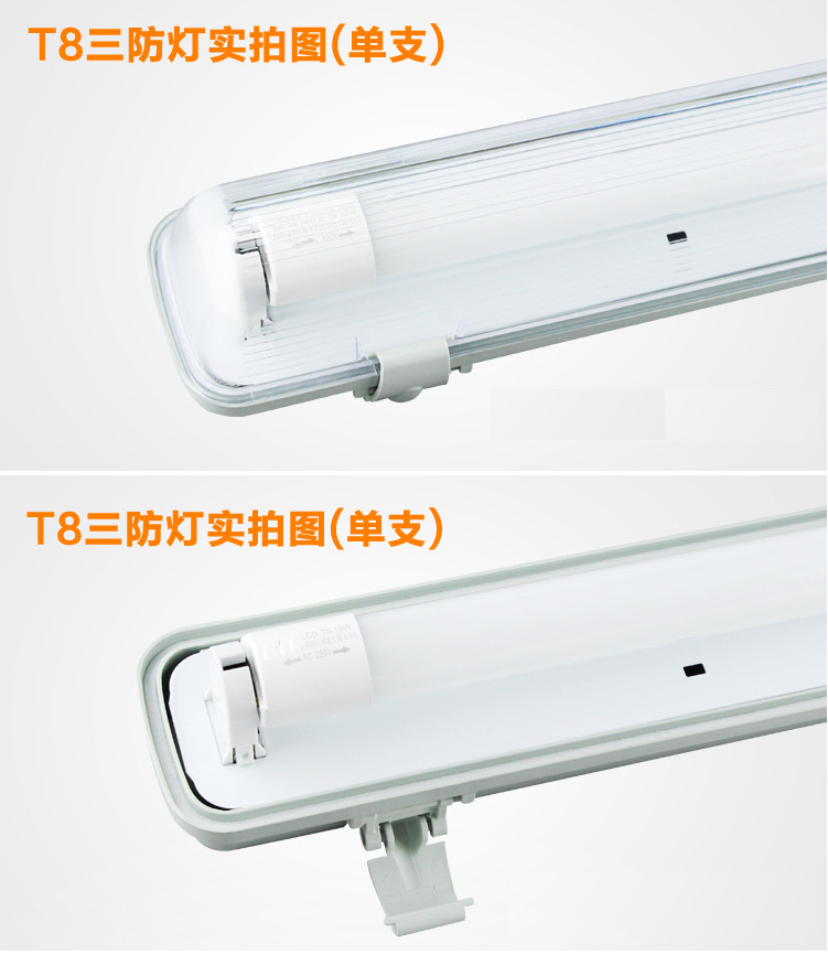 2:T8普通日光燈三防燈具,T8三防燈是一款應(yīng)用比較廣的燈具,是針對(duì)普通日光燈來設(shè)計(jì)的,有通用性,也是目前應(yīng)用較多的日光燈管。