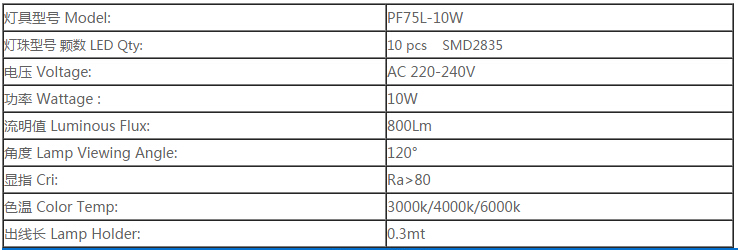 PF75L-10W產(chǎn)品規(guī)格: