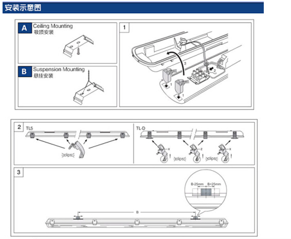 三防燈具安裝: