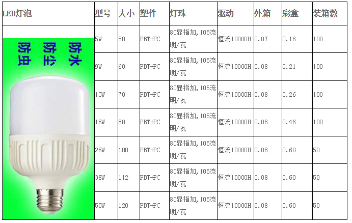LED燈泡產(chǎn)品參數(shù)